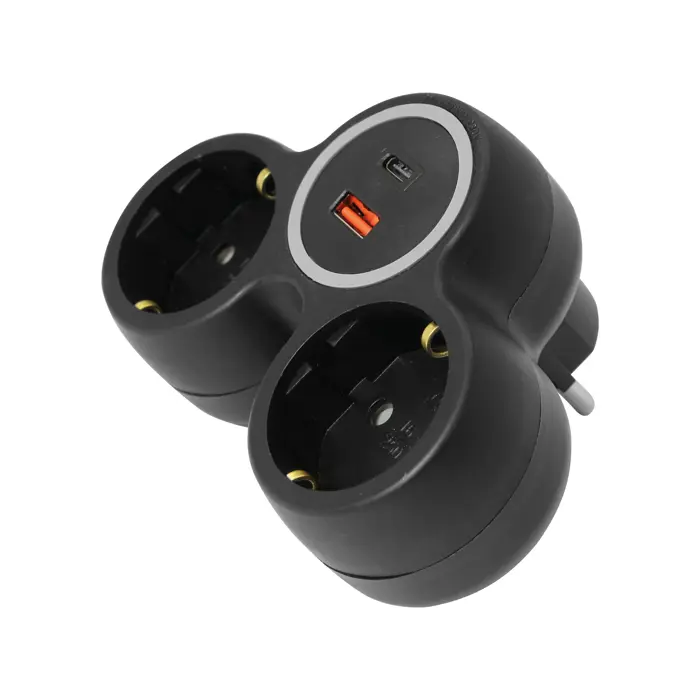 240-803 RAZDJELNIK 2-STRUKI S USB PUNJAČEM A+C (MAX. 20W), CRNI, 2X16 A