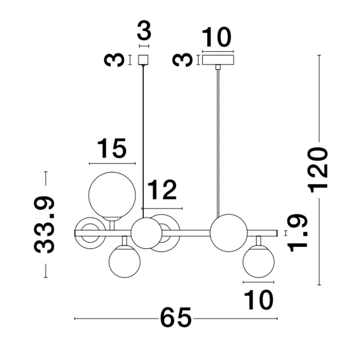 ODILLIA VISILICA 7×G9/230V 65cm CRNO/SIVA