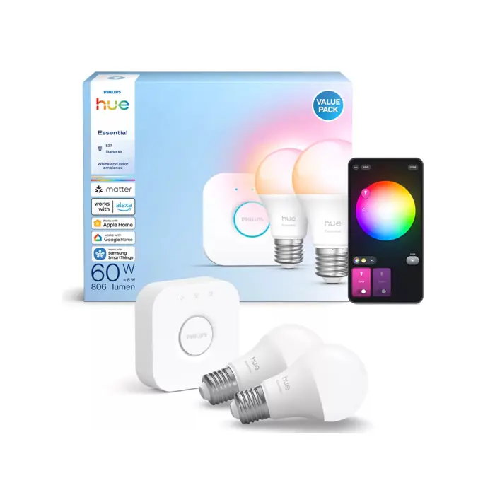 PHILIPS HUE WCA SMART ŽARULJE 2x 806Lm E27 2200-6500K+RGB + HUE BRIDGE