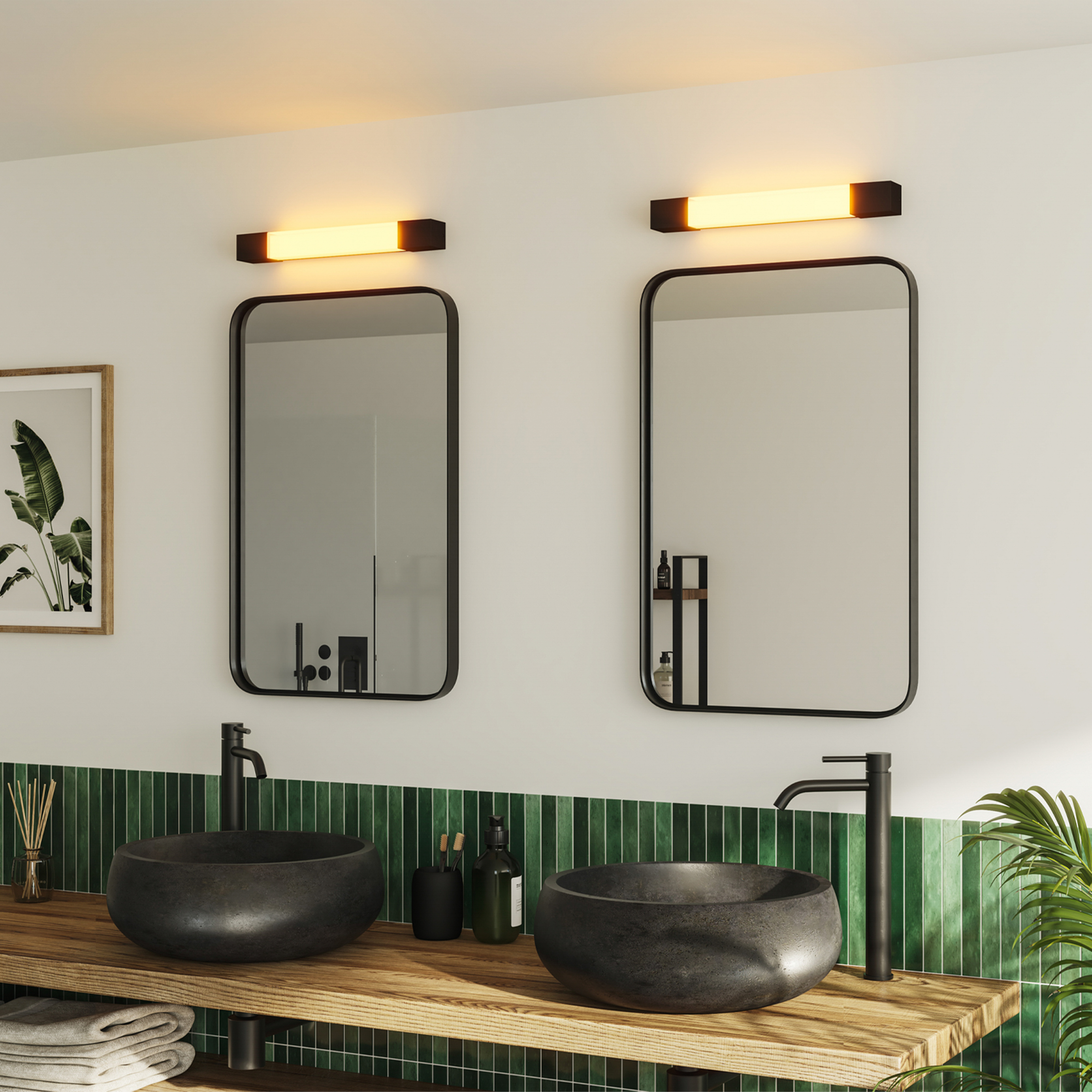 - Savjet: Ovo je idealno mjesto za zidne lampe pored ogledala. Voda može prskati iz umivaonika, stoga je IP44 obavezan.