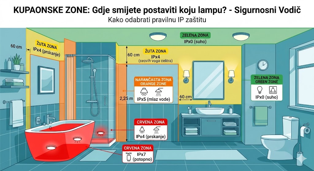 Kupaonica više nije samo funkcionalna prostorija; ona je postala kućni spa centar, mjesto opuštanja i regeneracije. Međutim, planiranje rasvjete u kupaonici zahtijeva mnogo više od pukog odabira lijepog lustera. Glavni izazov ovdje je vlaga, a ključno rješenje je IP zaštita.